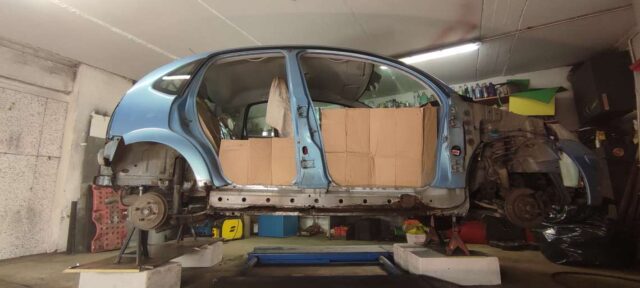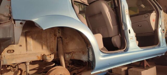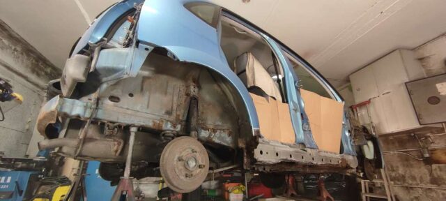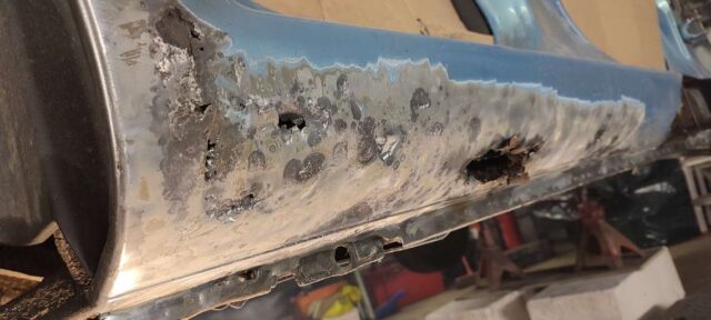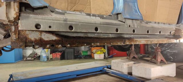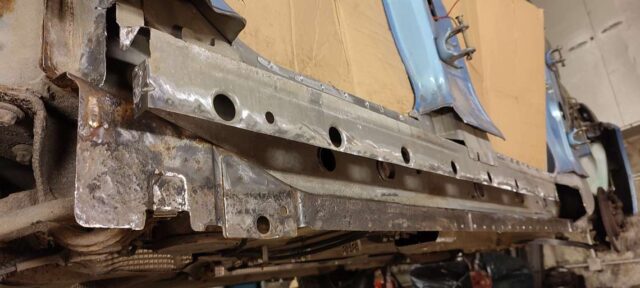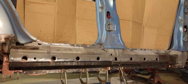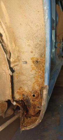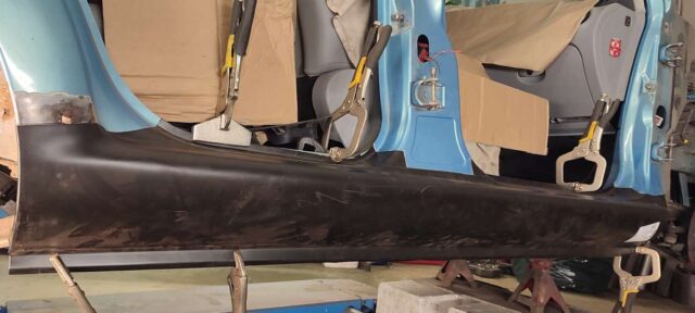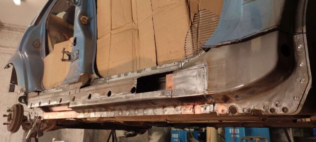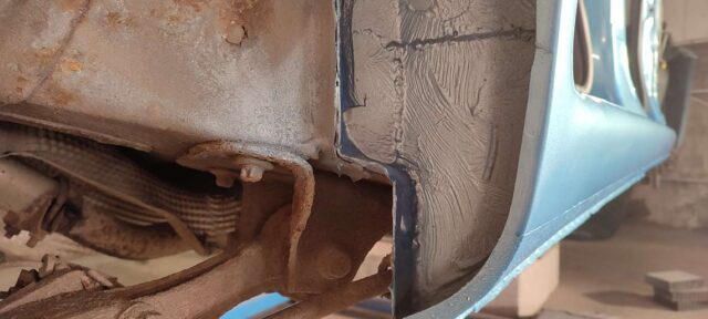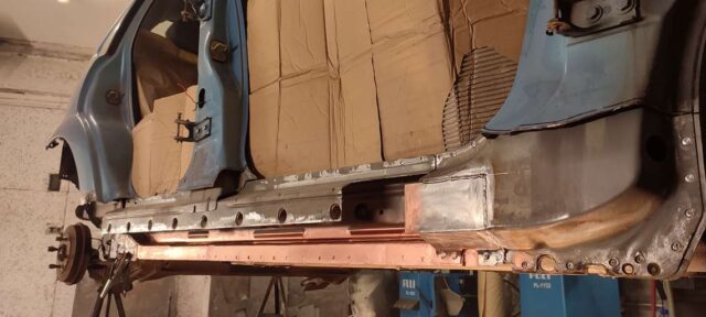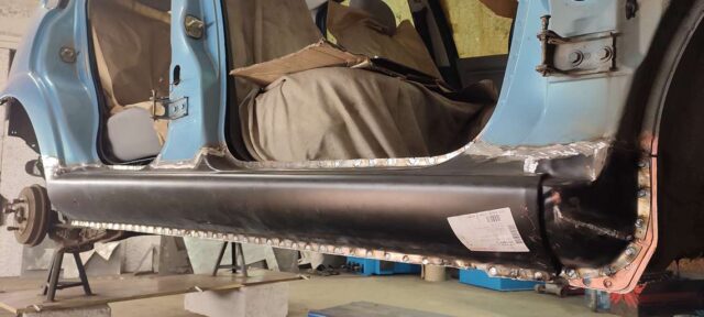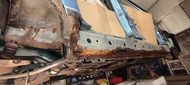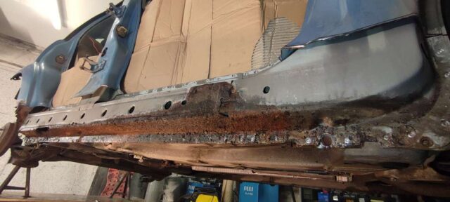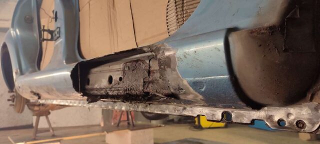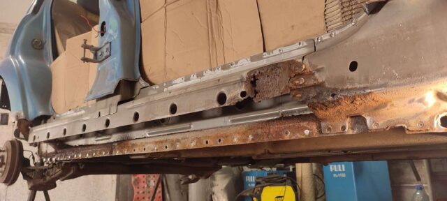 Sõidukil oli probleemiks kõrvalistujapoolne roostes küljekarp. Selle vahetust alustades tuli nähtavale tõsiasi, et taastamist vajas ka sisemine karp. Lisaks läks töösse sama külje tagumine tiib, mis oli samuti roostekahjustustega. Albumis pildid töö protsessist etapi kaupa.