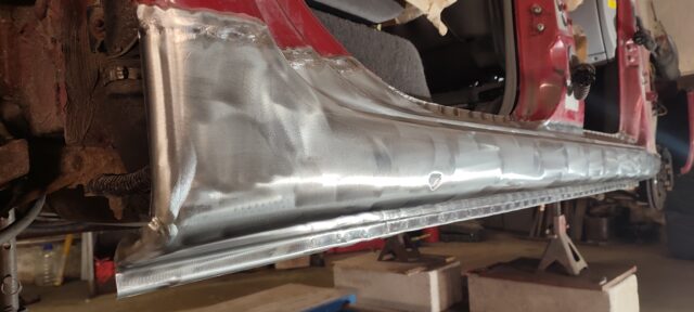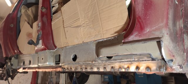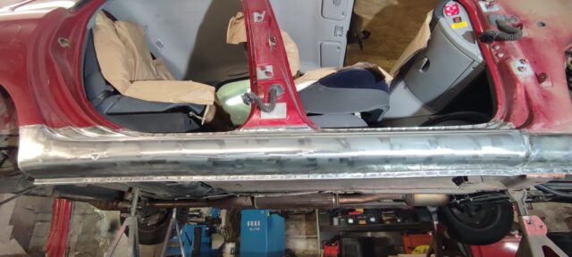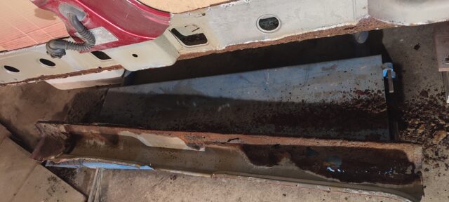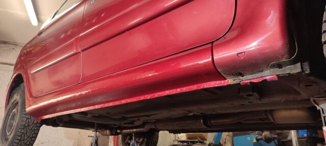 Läbivate roostekahjustustega kõrvalistujapoolse küljekarbi vahetus. Pildid töö protsessist etapi kaupa galeriis.